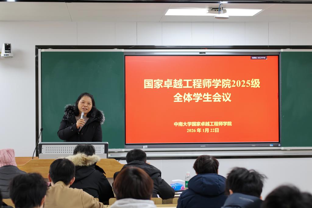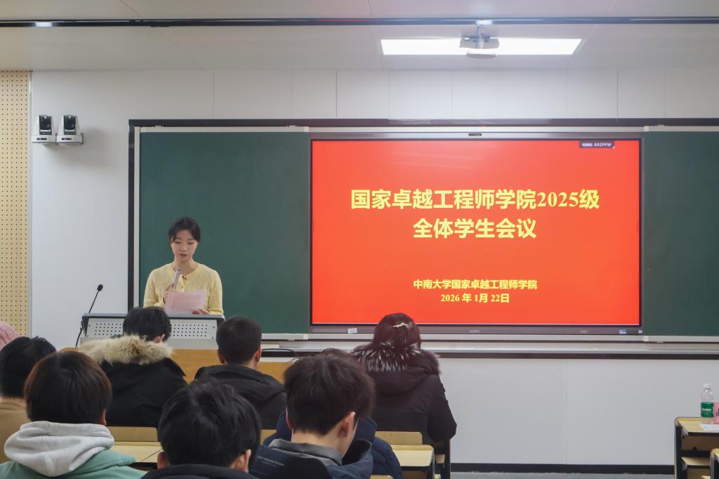为帮助2025级研究生深入理解卓越工程师培养要求、凝聚发展共识,快速融入学院培养体系,夯实卓越工程师成长基础,1月22日,国家卓越工程师学院在中南大学岳麓山校区科教南楼506召开2025级全体学生会议。中国工程院院士、学院院长赵中伟,学院副院长陈爱良、党委副书记朱忠平及全体行政管理人员出席会议,2025级全体研究生参加。会议由副院长陈爱良主持。