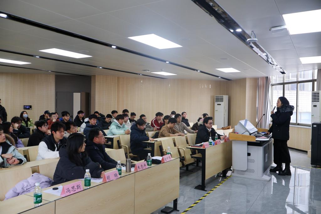 副院长陈爱良详细解读培养方案,重点介绍入企实践环节要求。她指出,学院实行“工学交替”培养模式,要求硕士、博士在企业累计实践时间分别不少于1年和2年,全面推行校企双导师制。她对导师选聘、入企准备、协议签订、过程管理及知识产权归属等作了系统说明,为学生规划学习与研究提供清晰指引。