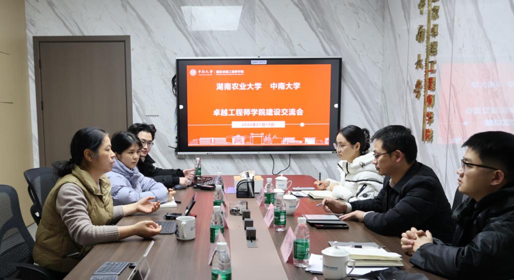 2026年01月19日上午,湖南农业大学湘江卓越工程师学院院长周智一行来访,双方围绕卓越工程师培养与学院建设开展专题交流。学院副院长陈爱良出席并主持座谈会。 陈爱良副院长对周智院长一行的到来表示热烈欢迎,并介绍了中南大学国家卓越工程师学院在体系建设、产教融合平台搭建、校企协同育人模式等方面的实践与思考。她表示,希望以此次交流为契机,相互借鉴经验,共同推动卓越工程师培养迈向更高水平。周智院长介绍了湖南农业...