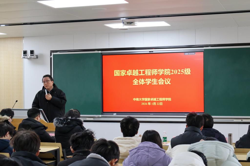 为帮助2025级研究生深入理解卓越工程师培养要求、凝聚发展共识,快速融入学院培养体系,夯实卓越工程师成长基础,1月22日,国家卓越工程师学院在中南大学岳麓山校区科教南楼506召开2025级全体学生会议。中国工程院院士、学院院长赵中伟,学院副院长陈爱良、党委副书记朱忠平及全体行政管理人员出席会议,2025级全体研究生参加。会议由副院长陈爱良主持。赵中伟院士结合个人经历与行业前沿,以恳切之言为学生指明成长方向,并就...